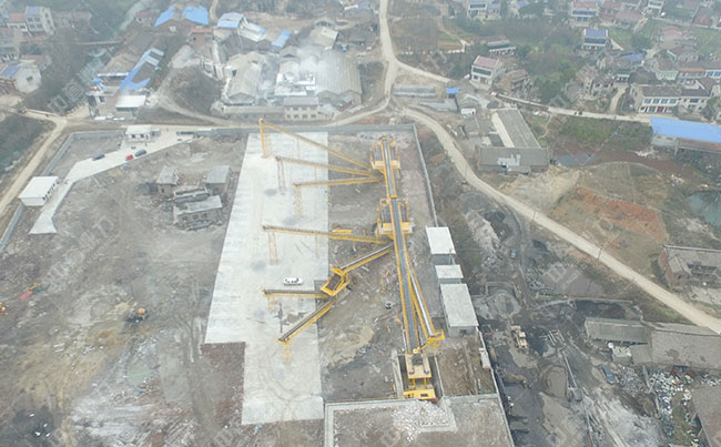 干法制砂年產(chǎn)500萬(wàn)噸生產(chǎn)線的現(xiàn)場(chǎng)環(huán)境,生產(chǎn)線傍山而建,減少一些不要的能源浪費(fèi)。
