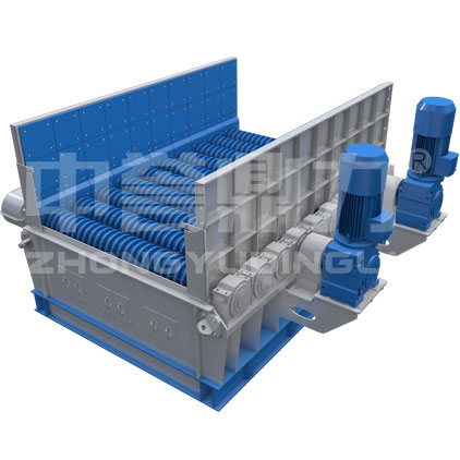 中譽(yù)鼎力滾軸篩的篩面是通過多個(gè)帶有滾盤的滾軸橫向平鋪來形成的篩面,而相鄰的滾軸和滾盤之間會(huì)有空隙,而這些空隙就是篩孔,來篩分不同的物料。工作原理是電機(jī)通過傳動(dòng)軸、減速機(jī)來帶動(dòng)鏈輪,鏈輪可以通過鏈條使相鄰的鏈輪和滾軸進(jìn)行傳動(dòng),且傳動(dòng)的方向要與流料的方向一致。從而使篩面上的物料被傳動(dòng)的滾軸帶動(dòng),向排料的一端移動(dòng)、獲得篩分,細(xì)料透過篩孔直接落下,粗料被移動(dòng)到排料端排出。滾軸篩除篩分作用外還兼有給料作用。