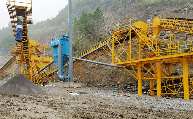 時產(chǎn)200噸生產(chǎn)線破碎高硬度物料可配置“給料機+顎破+反擊破+振動篩+輸送機+除塵器”。